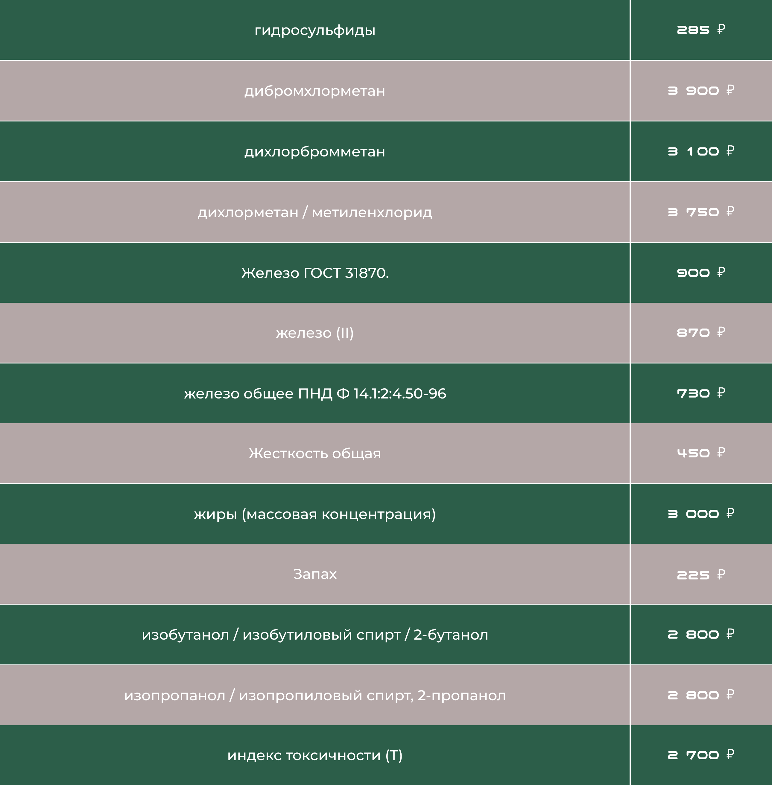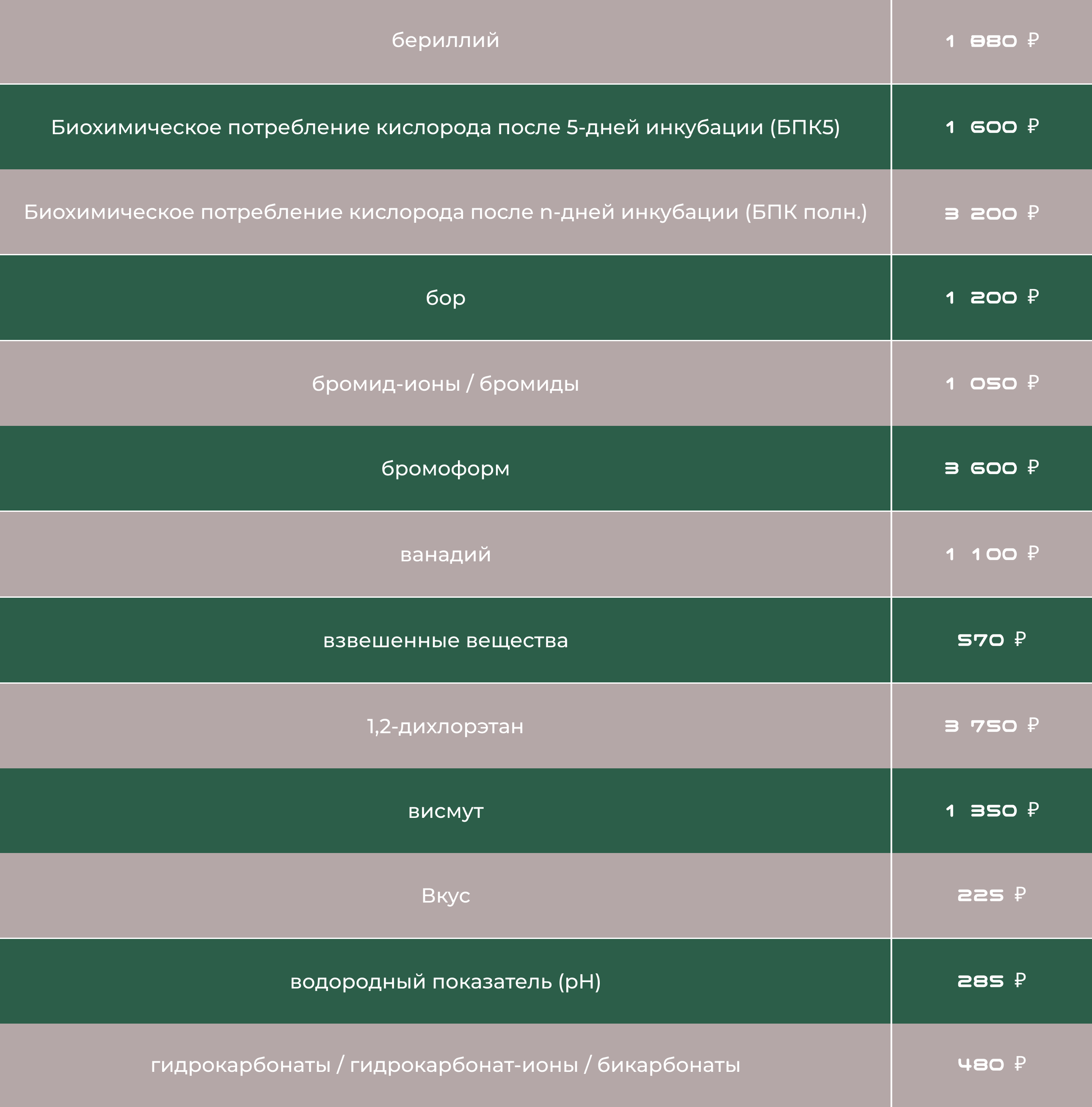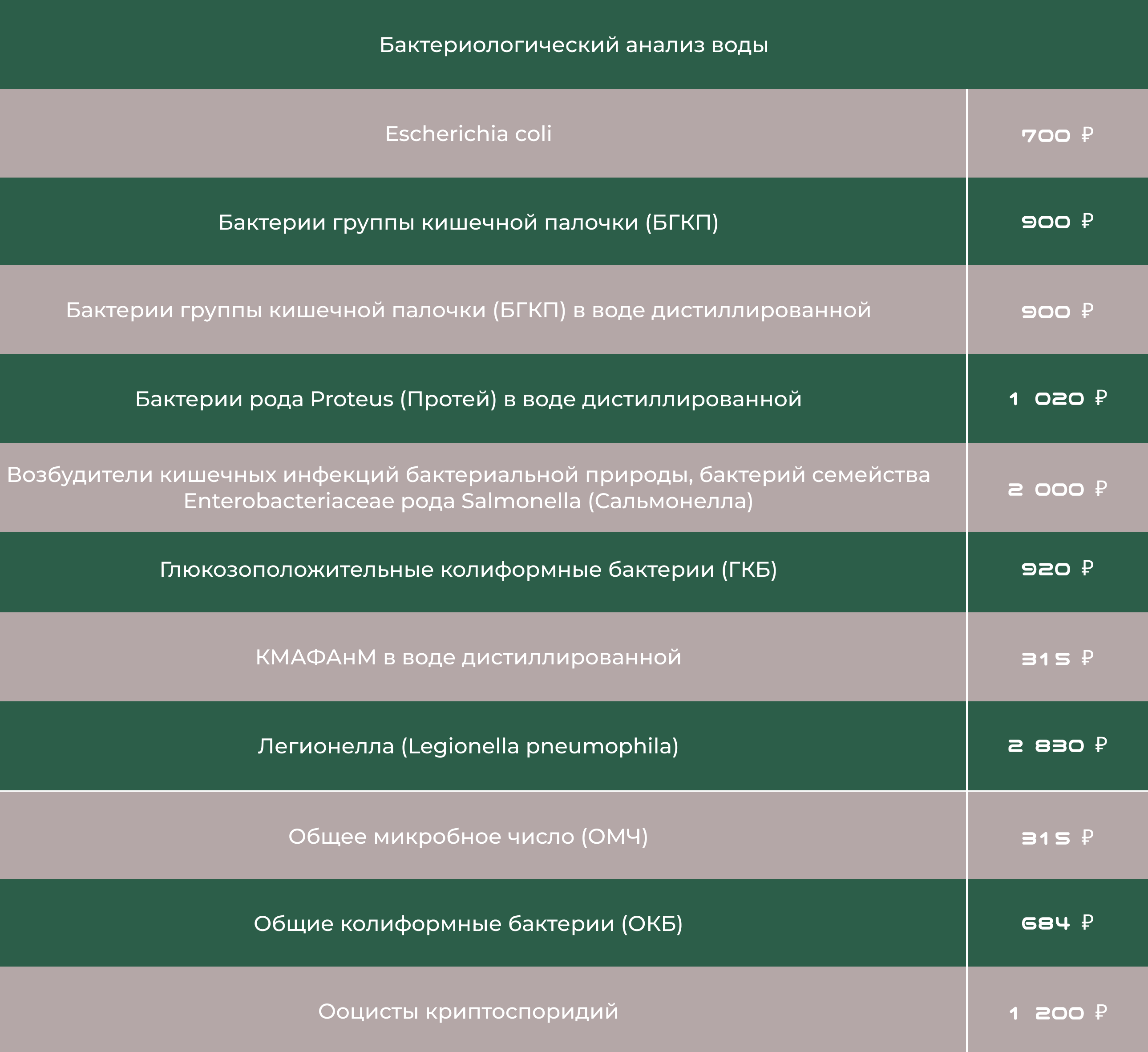 Аккредитованная лаборатория СПИЛЦ выполняет широкий спектр исследований качества воды по химическим, микробиологическим и радиологическим показателям из любых источников – водопровод, скважина, колодец, природные и сточные воды, воды бассейнов, джакузи и аквапарков, грунтовые, бутилированные, минеральные лечебно-столовые, вода дистиллированная.