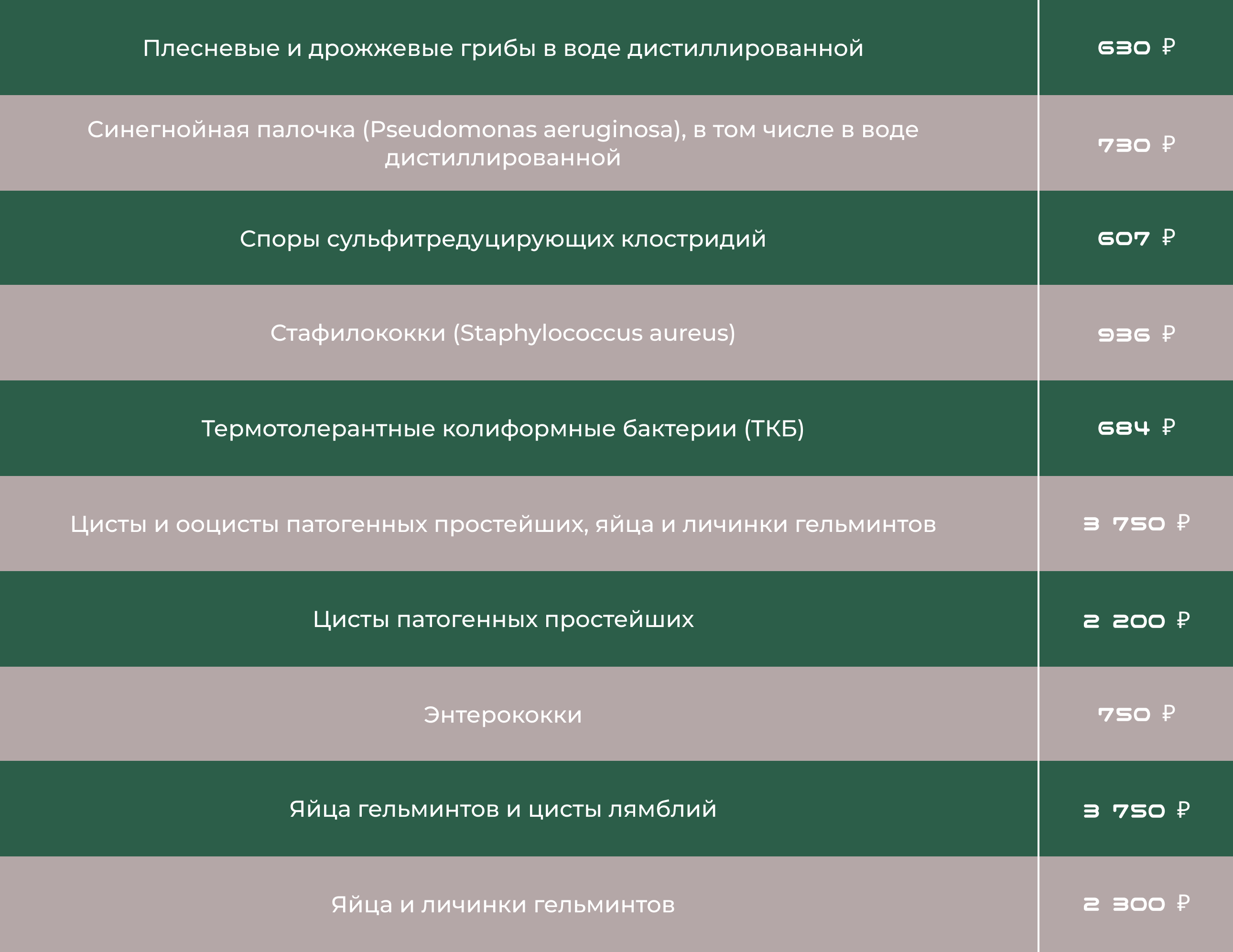 Наш аккредитованный лабораторный центр предлагает следующие исследования сточных вод: