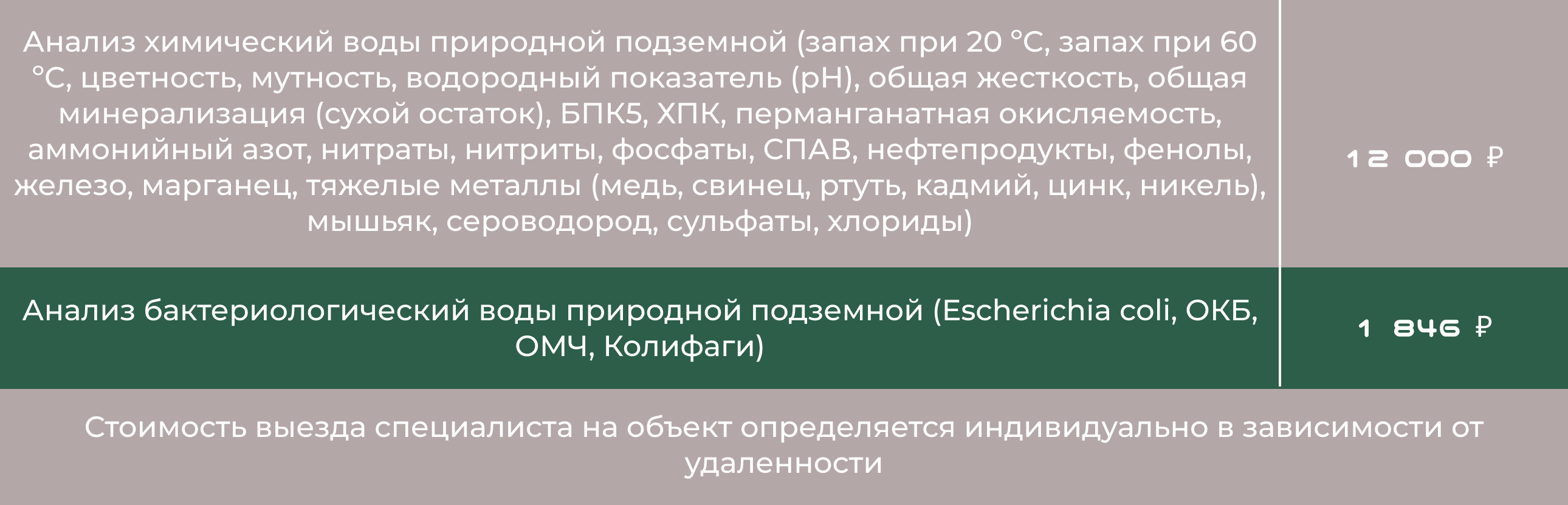 Перед сдачей объекта строительства в эксплуатацию, перед использованием новой скважины или колодца, в рамках производственного контроля, для определения метода очистки воды и для решения многих других задач, необходимо провести анализ воды на соответствие соблюдения санаторно-эпидемиологическим нормам.